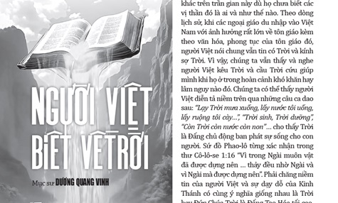Tôi tin rằng khi bạn đọc bài viết “Người Việt Biết về Trời” trên NS Nguồn Sáng số 48 trong tay bạn cũng là lúc Đức Chúa Trời đang kêu gọi bạn đến với Ngài dể bạn thực sự biết Trời, tin Trời, thờ Trời và theo Trời theo đúng đức tin mà bạn đang tìm kiếm và ao ước. Nếu bạn muốn, hãy cầu nguyện theo sự hướng dẫn của tôi nhé. Hãy lập lại lời sau: