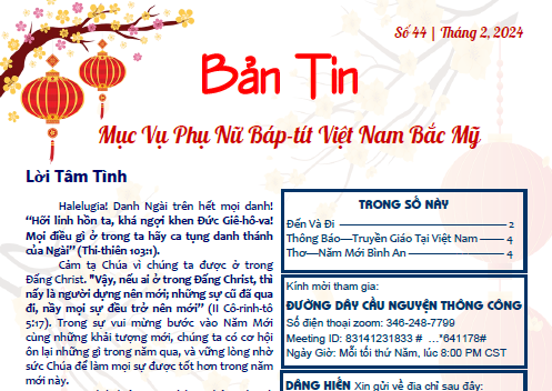 Bản Tin Mục Vụ Phụ Nữ Báp-tít Việt Nam Bắc Mỹ – Số 44 / Tháng 2. 2024