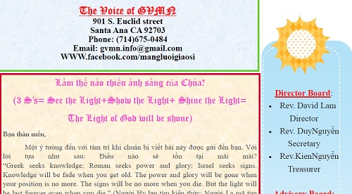 Chương trình Phát Thanh của HỘI THÁNH TIN LÀNH CÔNG VỤ CÁC SỨ ĐỒ San Diego California