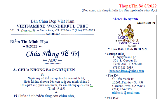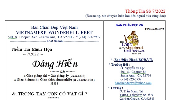 HỘI BÀN CHÂN ĐẸP VN – Thông Tin Số 7/2022