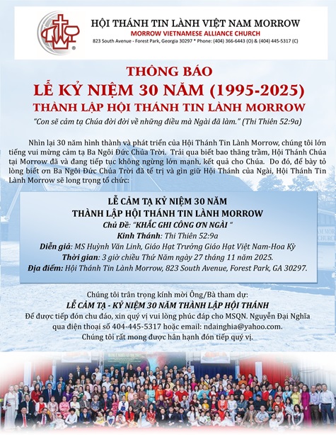LỄ CẢM TẠ KỶ NIỆM 30 NĂM THÀNH LẬP HTTLVN MORROW GA